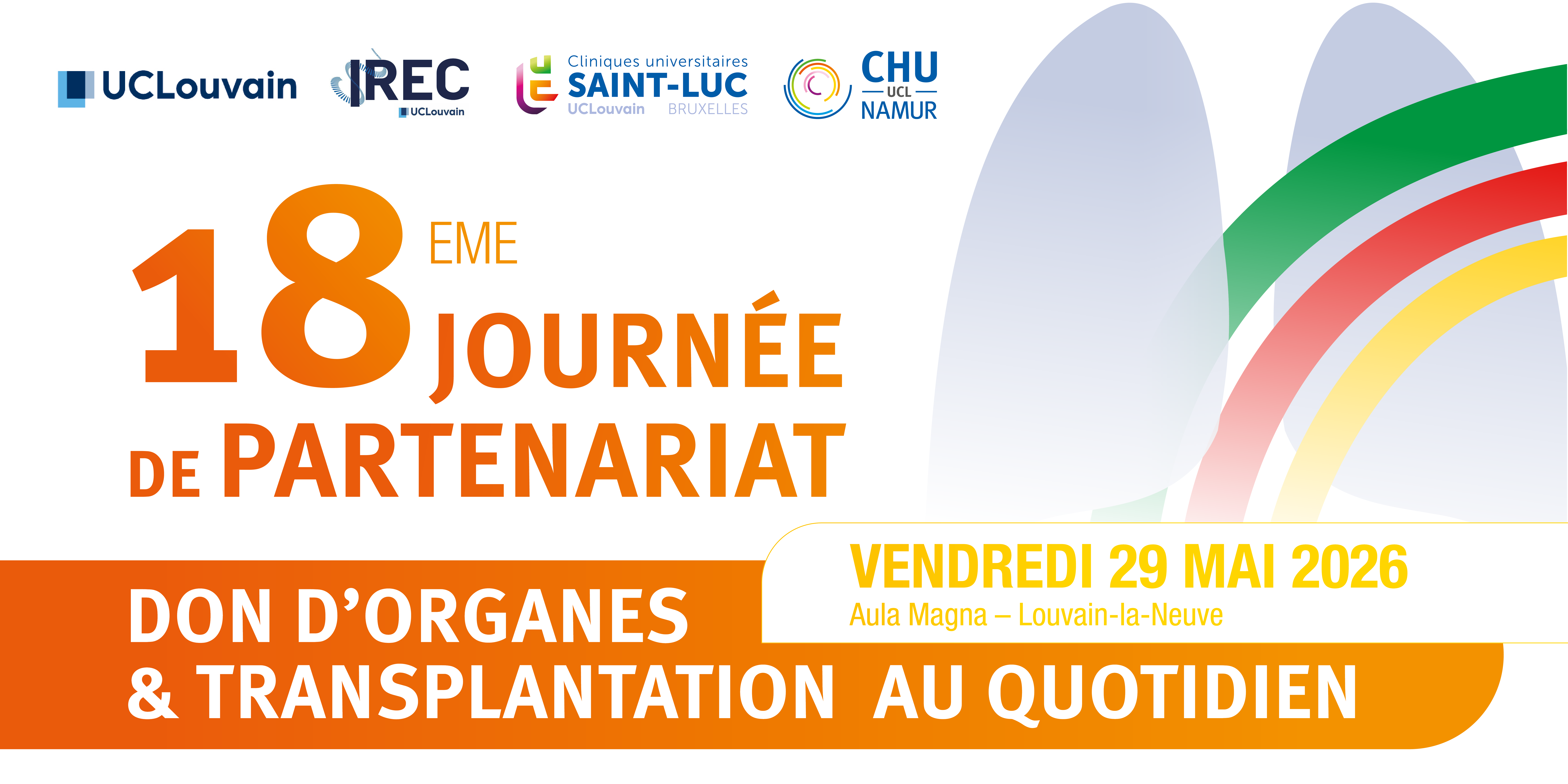 Cette année, nous avons le plaisir de bénéficier du soutien et de la précieuse collaboration de l’Institut de Recherche Expérimentale et Clinique (IREC). Grâce à ce partenariat, nous aurons l’opportunité d’accueillir des orateurs de renommée internationale, proches ou plus lointains, qui ont collaboré avec nous au fil des années. Ils partageront leurs expériences et les différences observées dans leurs pays respectifs quant aux approches en matière de transplantation et de don d’organes.